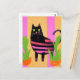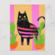 Cartão Postal Gato com Strips Rosa AI gerada arte
