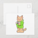 Cartão Postal Gato com xícara de café e pijama