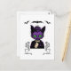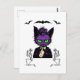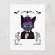 Cartão Postal Gato de Halloween Roxo com Bats e Skeletons