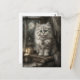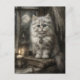 Traga um toque de magia e mistério para a sua temporada de Halloween com este design postal encantador. Apresentando uma adorável cinza fofa por gatinho com grandes olhos cheios de alma, sentada num antigo livro ortográfico à luz de velas, esta trabalho de arte combina encanto gótico com vibrações acolhedoras de cottagecore. Uma lua de cheio brilha pela janela, melhorando a atmosfera mística, enquanto o pingente do ornamentado do gatinho e a lanterna que treme adicionam um toque brutal. Perfeito para cumprimentos de Halloween, artigos góticos, ou como impressão de arte colecionável para amantes de gatos, fãs de fantasias, e qualquer um que goste de estética brutal. Quer seja enviado como cartão sazonal ou guardado como guardião, este design capta o equilíbrio perfeito entre fofo e assustador.