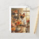 Cartão Postal Gato de outono com Flores - Saudação de Fall Seaso