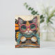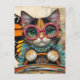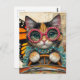 Uma adorável fada de gato com asas de borboleta veste óculos de bolinhas sobredimensionados e conduz uma engraçada colagem de estilo midiático