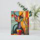 Cartão Postal Gato e café Abstrato Coloridos Cubist