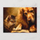 Cartão Postal Gato e cão lendo um livro