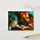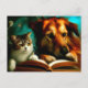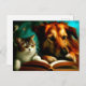 Cartão Postal Gato e cão lendo um livro
