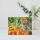Este cartão de Dia de Ação de Graças foi criado a partir de uma de minhas colagens. Várias ilustrações recortadas foram sobrepostas manualmente na minha foto original de um gato no jardim. Abóboras, ratos, chapéus e coroas também foram adicionados como camadas. O resultado final é adorável e perfeito para quem ama gatos. Quem receber este cartão postal de Natal vai sorrir.