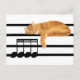 Tabuleiro laranja comprido por gatinho snoozes nas linhas de funcionarios de um cartaz de música e amantes de música