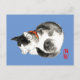 Um gato preto e branco delicado, vestindo um colar vermelho, dormindo tranquilamente. O artista, Kōno Bairei, 3 de março de 1844 - 20 de fevereiro de 1895, foi mestre em pintura kacho-e (representações de pássaros e flores) no período Meiji, no Japão.