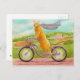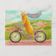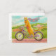 Cartão Postal Gato Laranja numa Bicicleta Roxa