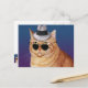 Cartão Postal Gato listrado amarelo com óculos de sol e chapéu