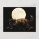 Cartão Postal Gato Lua em uma cerca com lua cheia