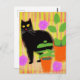 Cartão Postal Gato Negro Cinto em Plantações