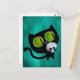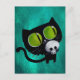 Gato Assustador Negro com Caveira. Este gatinho fofo com olhos verdes grandes segurando um crânio humano! Não é um gato assustador;) Que presente de Halloween excelente para Crianças. Este gato preto é como Edgar Allan Poe (ou algo assim;) mas não lhe trará má sorte. Eu prometo! Gato de ilustração preto de Madame Colonelle