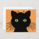 Cartão Postal Gato Negro de Olhos Verdes Grandes com Olhos Búlga