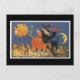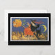 Cartão Postal Gato Negro e Bruxa do Halloween