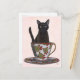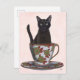 Gato Negro em Teacup por FabFunky. Possui um gato sentado em uma bela equipe floral. | 191544D