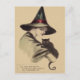 Cartão Postal Gato Negro Feliz Bruxa Sorrindo