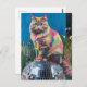 IA gerou arte de um gato colorido sentado numa bola de discoteca
