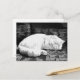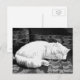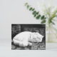 Cartão postal com um lindo gato persa branco, dormindo pacificamente em um cobertor do Sudoeste, em branco e tons de cinza