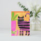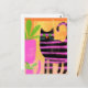 Cartão Postal Gato Preto Adorável com Grelhas Rosa