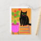 Cartão Postal Gato Preto Adorável Com Plantas Domésticas