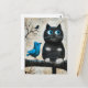 Cartão Postal Gato Preto Assustado e Pássaro Azul no Galho