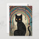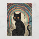 Cartão Postal Gato preto bonito com arco-íris na cidade