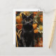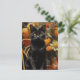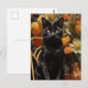 Cartão Postal Gato Preto Com Flores Laranja