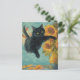 Cartão Postal Gato Preto e Vaso de Girassóis