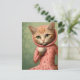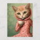 Um gato com um vestido cor-de-rosa segura um café arte engraçada IA gerada
