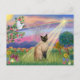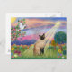 Um anjo aparece nas nuvens à medida que o sol se rompe e um arco-íris clareia o céu como um Selo de Chocolate Ponto Senta-se um gato siamês na grama legal.
