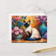 Elegante Gato Siames e Buquês em Vasos cartão postal aquarela
