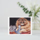 Um cartão postal de arte com um retrato animal de dois gatos de Louis Wain (1860-1939), um artista inglês. Um gato cinza e um gatinho laranja de cabelos longos sentado ao lado de um gato porcelana com expressões humorísticas.