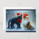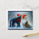 Gato festivo está pronto para o fundo de neve de inverno com o Papai Noel e o cachecol.