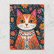 Cartão Postal Gatos e Flores de Arte Folical Whimsical