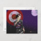 Geisha, Kimono, Vermelho, Branco, Preto, maquiagem, Obi, Lua, Roxo, Parasol, Pétalas do Flor de Cereja, sonho, fantasia, cabelo, maquiagem