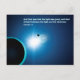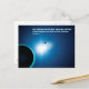 Uma imagem estilizada em tons azuis e branca da Terra e Lua iluminada de volta pelo sol. Uma tradução em inglês do Gênesis 1:4 lendo "Deus viu que a luz era boa, e Deus dividiu a luz da escuridão" também aparece em azul e branco brilhantes.