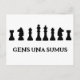 Este postal apresenta uma bela design de peças de xadrez com o slogan "GENS UNA SUMUS" que significa "Somos uma pessoas" em latim. A intrincada design e tipografia fazem dela uma adição perfeita a qualquer coleção de amantes do xadrez. Quer você esteja enviando para um amigo ou guardando para si mesmo, este cartão postal certamente impressionará.