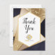 Cartão Postal Geométrico Dourado Azul Marinho Obrigado Logotipo