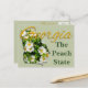 Embora por vezes se chame o "Estado Império do Sul", o apelido oficial da Geórgia é "O Estado de Pêssego". Não admira. A Geórgia é o produtor número um de amendoins, pecanos e pêssegos. O Rosa Cherokee, adorável e perfumado, tem uma triste história associada a ela. Um acontecimento trágico, em 1838, em que milhares de Cherokee foram forçados a sair da Geórgia e de outras terras a leste do rio Mississippi. O caminho percorrido pelos Americanos nativos foi chamado de "Trilha das Lágrimas" por causa das lágrimas derramadas pelas mulheres Cherokee na viagem e por causa do número de Americanos nativos que morreram no caminho. Chefes, dizem, rezaram por um sinal para dar esperança às mulheres. Diz-se que onde quer que uma lágrima caísse, um Rosa Cherokee florescia. As flores continuam florescendo ao longo do caminho hoje. A Geórgia tornou-se o 4º Estado em 1788. Como um dos nossos estados "mais velhos", é surpreendente que a canção estatal "Georgia On My Mind" tenha sido adotada em 1979 e que a bandeira oficial do estado só remonte a 2003. Por toda a sua rica história, boa e má, a Geórgia é o lar de uma das cidades mais contemporâneas do país: Atlanta. Atlanta também é o berço da Coca-Cola. Este design encantador homenageia este belo estado. O esboço do estado está cheio dos lindos florescimentos brancos do Rosa Cherokee. Isto é colocado em camadas com o ouro amarelo "Georgia". Estes cartões postais deliciosos podem ser comprados antes das suas férias, para que você não perder tempo procurando por eles e possa se concentrar em toda a beleza ao seu redor. Par com os selos de correio correspondentes para uma apresentação ainda mais impressionante.