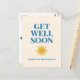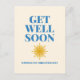The gentle and hopeful postcard has a supportive message of encouragement "Get well soon wishing you brighter days". It has a blue typography design and a joyful yellow sun illustration on a cream background.