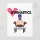 Uma menina de cabelo castanho em um collant roxo e rosa faz parada de mãos em camisetas, canecas, ímãs, bolsas, chaveiros, botões e outras roupas e presentes de ginástica para meninas ginastas.