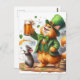 Cartão Postal Ginger Cat Adorável e um Rato com Cerveja