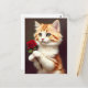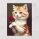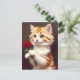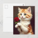Cartão Postal Ginger Cat Bonita segurando uma Rosa vermelha