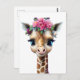 Cartão Postal Girafa-bebê bonita com flores e Holly