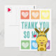 Se você está procurando uma maneira de expressar sua gratidão enquanto torna o dia de alguém um pouco mais brilhante, você pode apreciar este cartão postal de agradecimento de girafa do coração do arco-íris fofo. Ele está disponível em vários tipos de papel e é vendido com ou sem envelopes, por cartão ou em quantidades de 8 ou mais. Linhas e coração carimbado no verso para um toque adicional de amor e conveniência para escrever seu endereço. Perfeito para crianças e adultos de todas as idades que amam girafas, arco-íris e corações.