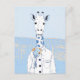 Cartão Postal Girafa fofa em pop art azul claro
