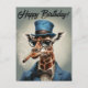 Cartão Postal Girafa personalizada com chapéu alto de aniversári