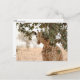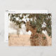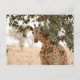 Cartão de animal mostrando uma girafa engraçada. A girafa (Giraffa camelopardalis) é um mamífero ungulado de dedos pares africano, o mais alto animal terrestre vivo e o maior ruminante. O nome de sua espécie se refere à sua forma semelhante a um camelo e à sua coloração semelhante à de um leopardo. Suas principais características distintivas são seu pescoço e pernas extremamente longos, seus ossicones semelhantes a chifres e seus padrões de pelagem distintos. A área de distribuição dispersa da girafa se estende do Chade, ao norte, à África do Sul, ao sul, e do Níger, a oeste, à Somália, a leste. As girafas geralmente habitam savanas, pastagens e bosques abertos. Sua principal fonte de alimento são folhas de acácia, que elas pastam em alturas que a maioria dos outros herbívoros não
