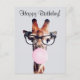 Cartão Postal Girafa Usando Óculos Sopra Chiclete Aniversário Fe
